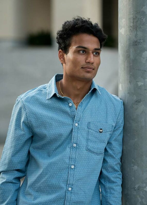 Lenis Motus Jeans Men Blue Regular Fit Solid Casual Shirt.